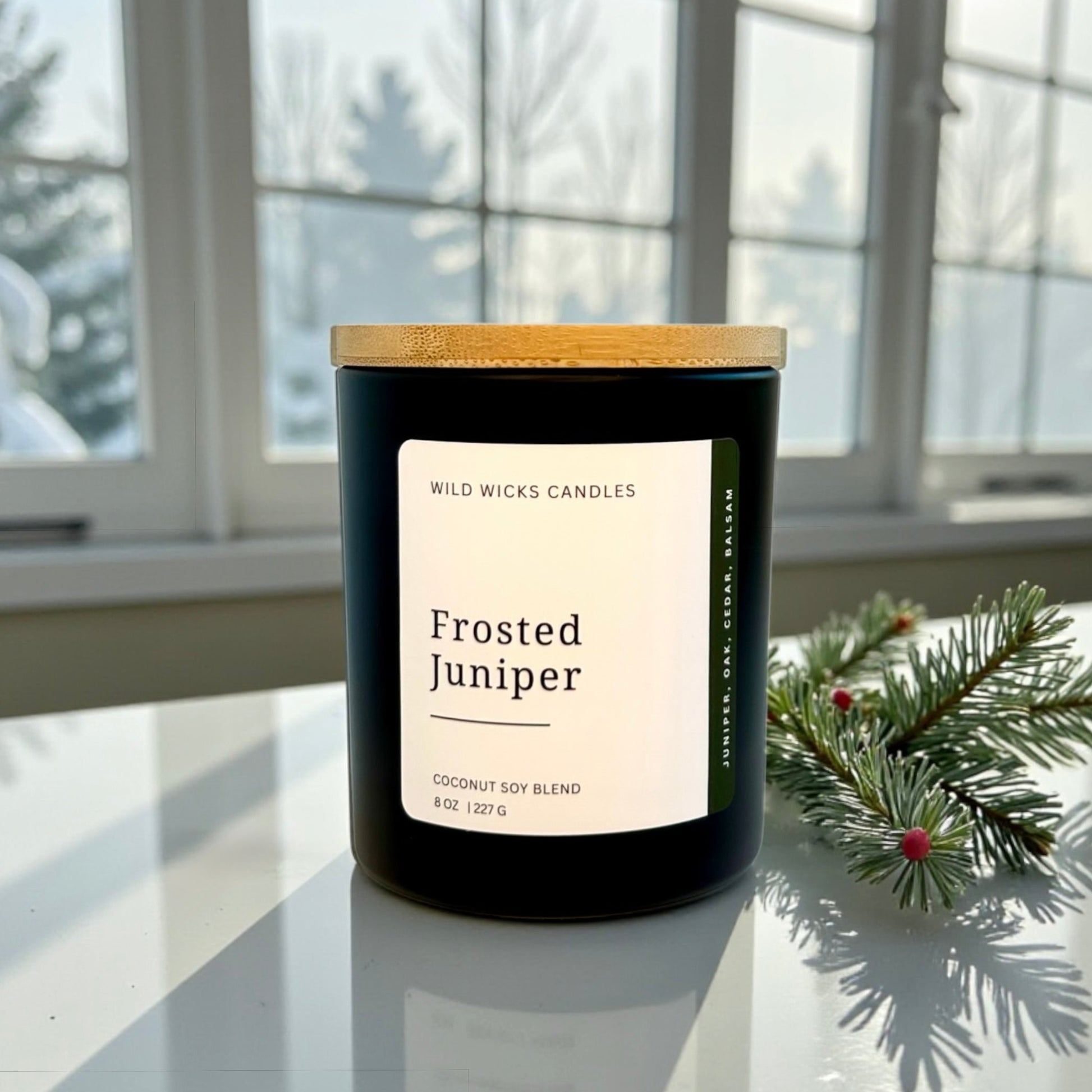 Cool juniper berries, fresh-cut evergreens, and a soft breath of icy winter air blend together to create a clean, refreshing scent that feels like stepping into a quiet frosted forest at sunrise. Minimal, bright, and effortlessly winter.