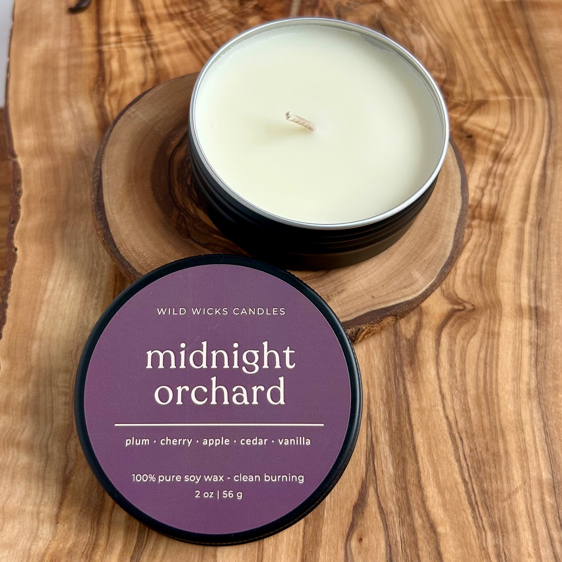 Indulge in the rich, mysterious side of fall with Midnight Orchard. Lush plum, orange, and cherry open the fragrance with a burst of ripe fruit, balanced by the elegance of violet and a sprinkle of cinnamon. Creamy vanilla and smooth cedarwood linger in the background, creating a warm, velvety finish. It’s an intoxicating blend for crisp nights and candlelit moments.